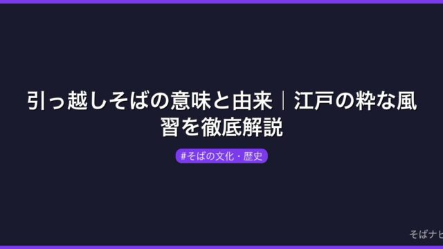 そばの文化・歴史 引っ越しそばの意味と由来|江戸の粋な風習を徹底解説 引っ越しそばの本来の意味は「食べる」ではなく「配る」もの。江戸時代の由来から地域差、現代の楽しみ方まで、そば専門メディアが徹底解説します。 2026.03.24 そばの文化・歴史