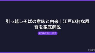 そばの文化をもっと知りたい方には、引っ越しそばの意味と由来の記事もおすすめです。そばが日本人の暮らしにどれだけ深く根付いているかがわかります。